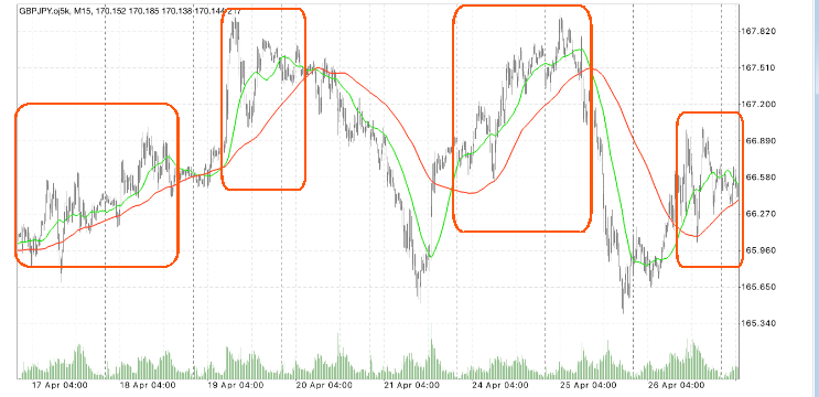 図ー1 5分足のMAクロス 10年 利幅70PIPS