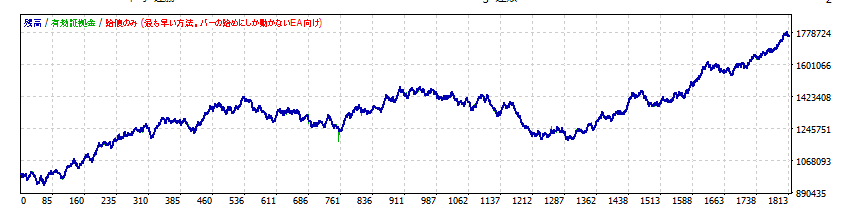 あら~ とてよくなった。エントリー数が増えて1079件。ドローダウンが前の半分以下に減った。それだけリスクが減ったことになる。そしてプロフィットファクターが1.51 。合計利益が減ったけどそんなの関係ない。エントリーするロット数が増やせればいいのだ。勝率が低いのがちょっといやだ。もっと磨きたいけど今日はここまでにします。